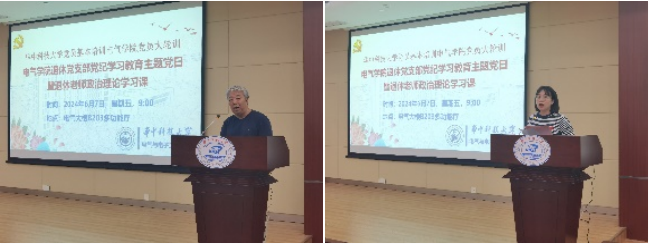 首先由学院党委副书记陈雪紫上党纪学习教育专题党课。陈雪紫汇报了2024年度学院“党员基本培训”和“党纪学习教育”两项重要工作的推进情况,指出学院大力开展党员基本培训,认真组织领航大讲堂、党员大轮训、支部大讨论,增强了党员的纪律意识,带动思想理论大武装,促进能力素质大提升,成效斐然。陈雪紫指出,本次党纪学习教育,于4至7月份在全党范围内进行,目标是学纪、知纪、明纪、守纪,主题是学条例、知规矩、强纪律、促发展,聚焦于学习《中国共产党纪律处分条例》。