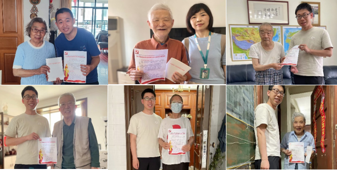 对于高龄党员老同志和身体不便的老同志,学院党委在会后组织“送学上门”,安排各系所教师党支部委员代表将学习资料和慰问品登门送到他们手里。