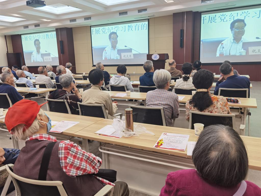之后全体党员和老同志集中聆听了祝灵君教授作的党纪学习教育专题报告。报告以“学习贯彻《中国共产党纪律处分条例》”为题,围绕党员违纪行为的三大特征、《条例》的五个版本及其诞生背景等重要内容进行系统讲解。听课过程中大家注意非常力集中,“学纪、知纪、明纪、守纪”,对“党规党纪严于国法”的概念体会深刻,大家在深入学习党纪的过程中更加明白了纪律是党的生命线,是维护党的团结统一、完成党的任务的保证;只有不断学习,才能跟上时代的步伐,政治进步,永不掉队。