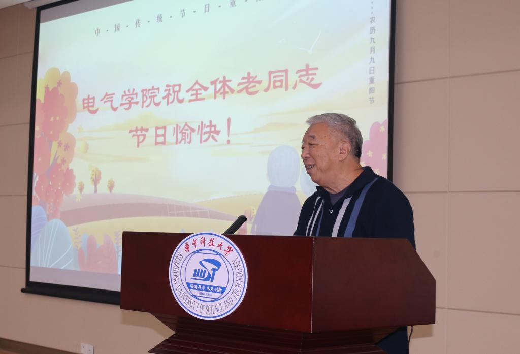 学院党委副书记陈雪紫代表学院党委向老同志祝贺节日。她说,“人生易老天难老,岁岁重阳,今又重阳”,在佳节到来之际,我代表学院党委和全院师生,祝您节日愉快,身体健康,幸福欢乐,福寿绵长!九月初九是尊老、敬老、爱老、助老的节日,NT动漫 重视尊老、敬老、爱老工作,坚持教育学生做到对老同志关心关爱,要求学生尊敬、爱护自己家的老人,同时也要象对待自家人那样去尊敬、爱护其他老人。陈雪紫表示,NT动漫 老同志以“老有所为”为荣,关心支持青年学生和教师的成长,踊跃参加“传承华工精神,讲好电气故事”活动,近期16位老同志参加学生党支部主题党日,受到了学生的热烈欢迎和高度评价,在此向参加活动的老同志致以崇高的敬意和衷心的感谢。她代表学院对在“老有所为”方面表现突出的陈德树、孙亲锡、李承、梁汉、何定桥等老同志进行表彰。
