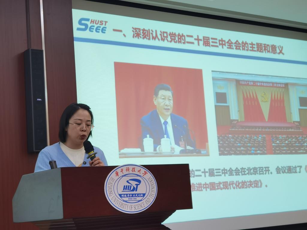 陈雪紫为老同志讲授了一堂生动的微党课。她解说了党的二十届三中全会的主题和意义,解读了《中共中央关于进一步全面深化改革推进中国式现代化的决定》,表示学院将狠抓全会精神落实落地,深化教育综合改革。通俗易懂的话语,简明扼要的PPT展示,让老同志对党的二十届三中全会精神有了更深层次的理解。