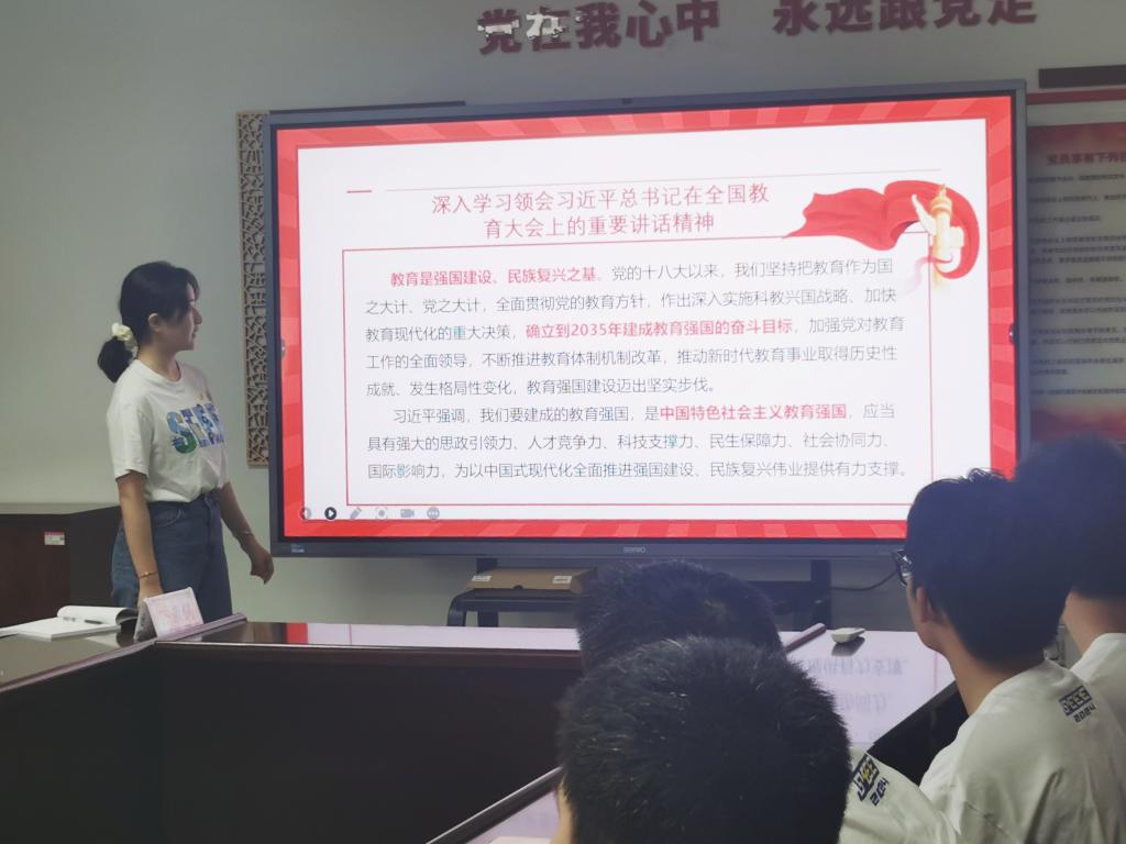 首先王文静进行理论学习导读。与会人员深入学习了习近平总书记在全国教育大会上的重要讲话和关于党纪学习教育作出的重要指示精神,深刻认识到教育强国是以中国式现代化全面推进强国建设、民族复兴伟业的先导任务、坚实基础、战略支撑,必需朝着既定目标扎实进行;要巩固深化党纪学习成果,坚持融入日常、抓在经常,把党纪学习教育成果持续转化为推动高质量发展的强大动力。