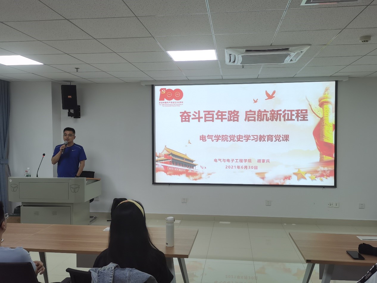 6月30日下午在在电气大楼B302,学院副院长胡家兵主讲了微党课,应用电子工程系、电工理论与电磁新技术系全体研究生党员和入党积极分子参加学习。
