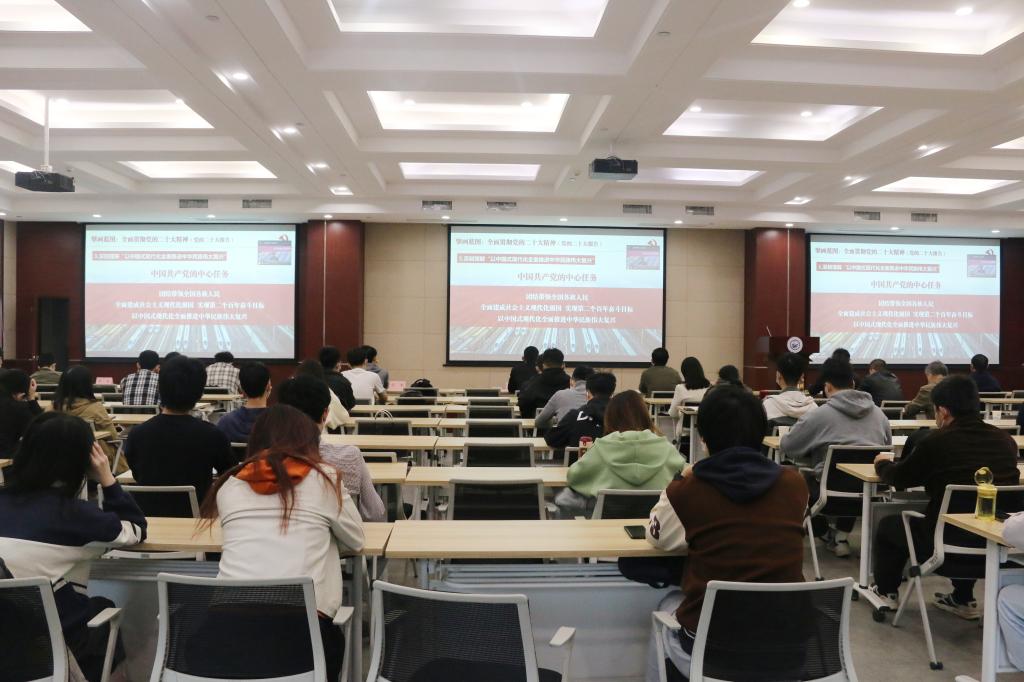 李元元书记从中国共产党第二十次代表大会的基本情况、完整准确全面贯彻党的二十大精神和以党的二十大精神为指引谱写新发展篇章三个部分全面传达党的二十大精神。